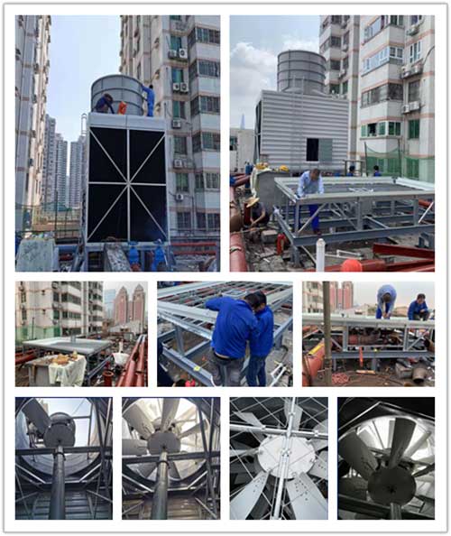 鴻翔花園位于深圳老城區(qū)之一的羅湖蔡屋圍區(qū)松園路。由于冷卻塔使用壽命長,冷卻塔填料老化,需要更換冷卻塔填料。接下來,根據(jù)鴻詳花園圓形冷卻塔填料的更換,介紹了拆卸和更換圓形冷卻塔填料的正確過程。 在清除