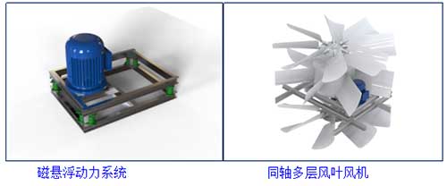 為盡量降低冷卻塔本體的風機噪聲,采用同軸多層風葉超靜音風機(21片),經(jīng)鈍化處理的鋁合金葉片具有耐化學性腐蝕的特性。該風機的原理是降低轉(zhuǎn)速(120轉(zhuǎn))增加風量,同比普通風機可以達到降噪接近20dB(A) 的效果,為滿足更加嚴格的降噪條件開創(chuàng)了新的標準。