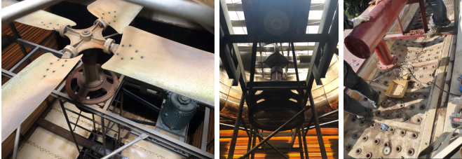 安裝新的冷卻塔超靜音風機,拆掉出風口消聲器 更換新的冷卻塔不銹鋼接水盤